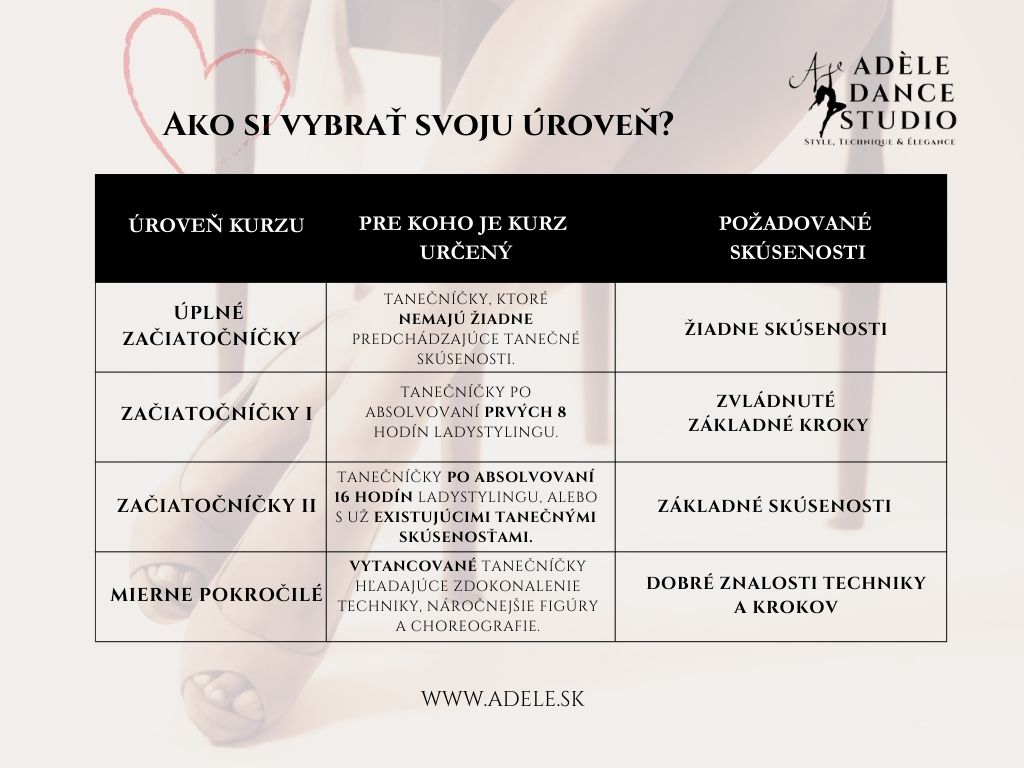 Pre koho: Pre všetky dámy, ktoré chcú posunúť svoje tanečné zručnosti na vyššiu úroveň, bez ohľadu na skúsenosti (od začiatočníčok po pokročilé).